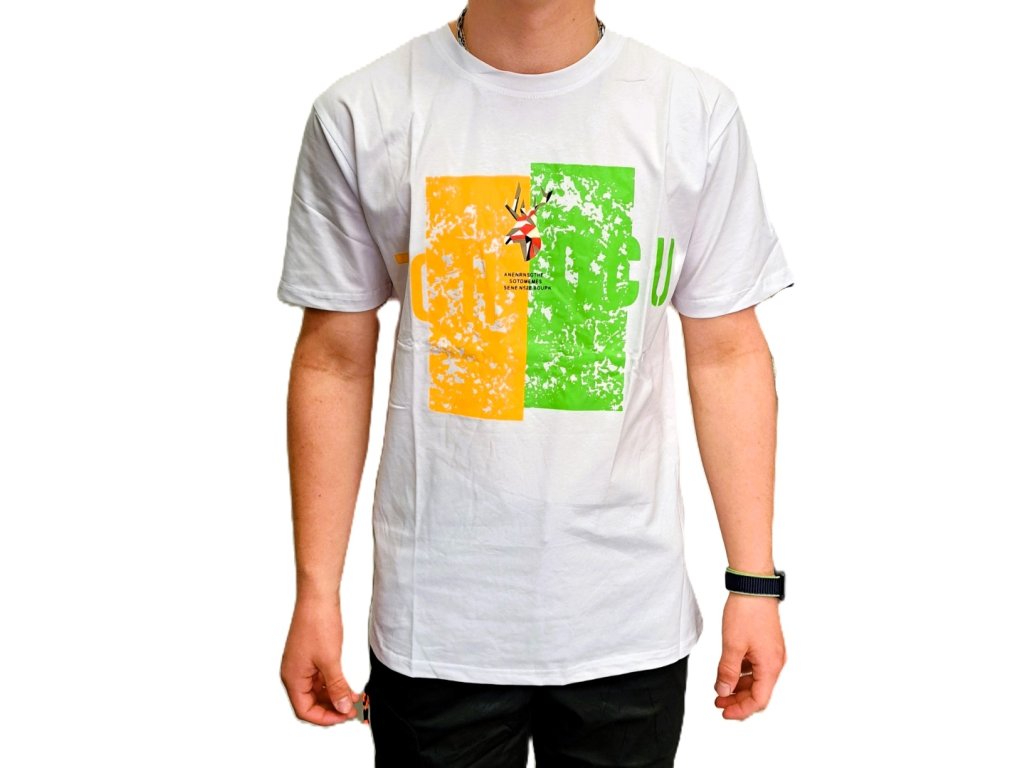 Tričko s výrazným potiskem je ideální volbou pro každodenní nošení i volnočasové aktivity. Díky kvalitnímu materiálu – 95 % bavlna a 5 % spandex – je tričko příjemné na dotek, pružné a perfektně sedí na těle.