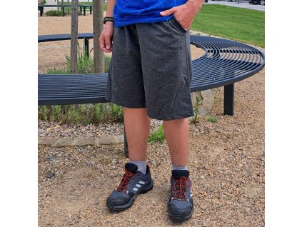 Díky obsahu spandexu jsou tyto kraťasy opravdu příjemné na dotek. Materiál je mírně elastický - jedná se o bavlněný úplet s riflovým designem. V pase je široká guma se šňůrkou v tunýlku ke stažení na vnější straně. Tento model má dvě přední kapsy i dvě zadní - bez zipů. Šortky mají moderní design i díky ozdobnému prošití na stehnech, falešnému poklopci a reflexnímu drobnému označení ,,Wolf" pod levou kapsou.