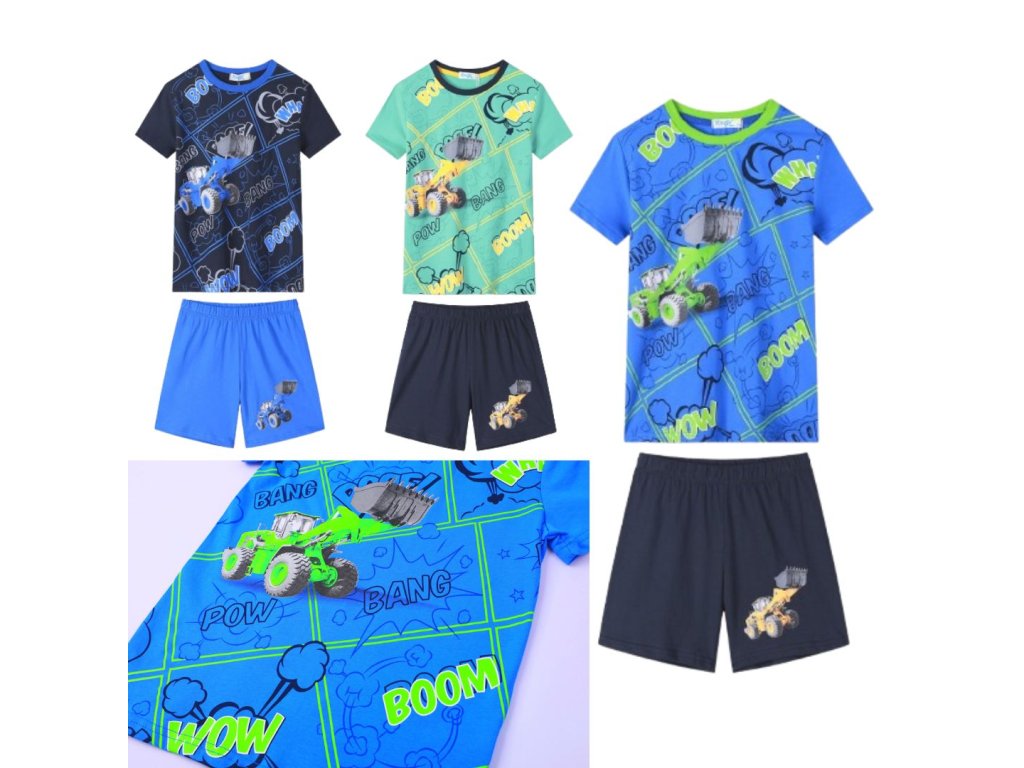 Bavlněné pyžamo s obrázkem kolového nakladače pro malé kutily a stavitele. Letní barvičky, příjemný materiál. Hmmm..... To se bude spinkat ;-)